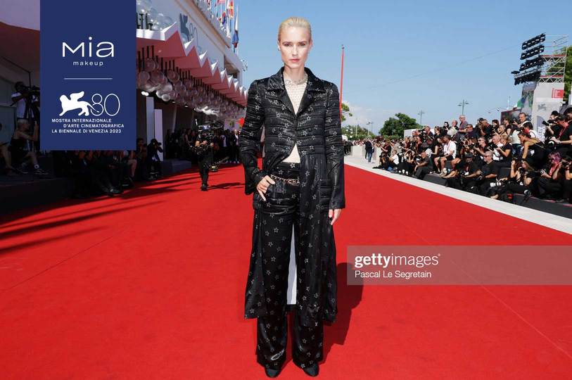 Blještavi glam u nude tonovima s dodirom roze, trend koji raste zahvaljujući Barbie maniji. Valentina izgleda blistavo s laganim contouring efektom i baby pink usnama.